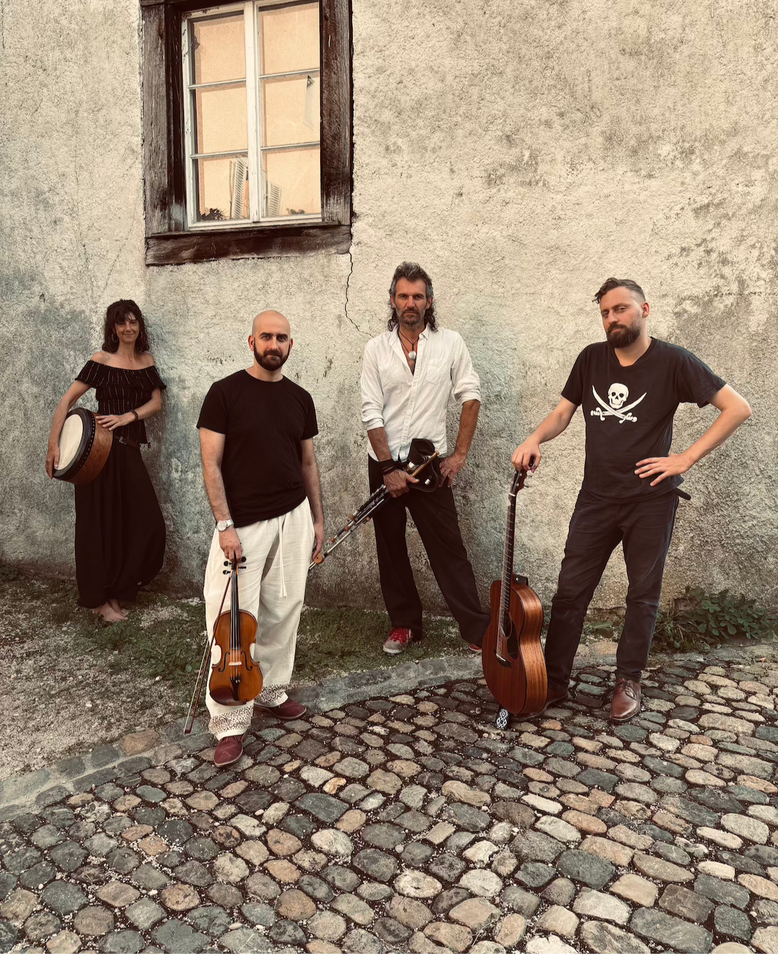 TAÍN formiert sich aus vier Musikerinnen und Musikern aus der Region Bern, die sich ganz dem keltischen Folk verschreiben. Thom Freiburghaus und Larsen Genovese spielen Dudelsack, Flöte und Violine, Mirjam Gosteli würzt mit feuriger Perkussion und Silas Bitterli bereitet mit seiner kraftvollen Gitarre das Fundament für seine Gesänge um Seeleute, gebrochene Herzen und wilden Thymian. Die Melodien widerspiegeln Lebensfreude und Leichtigkeit, gepaart mit einer Prise Sehnsucht und Melancholie.